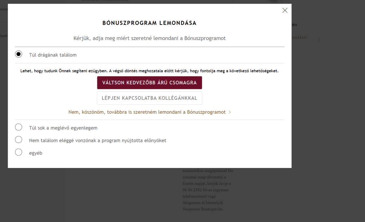 Kilépés hűségprogramból